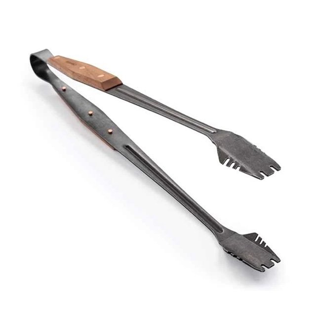 - Expert Craftsmanship: Hand-tooled and forged with meticulous attention to detail, these tongs exemplify exceptional craftsmanship. The blackened stainless steel with an antiqued finish enhances both the durability and visual appeal, while the natural walnut handle provides a comfortable grip that stays cool even over high heat.