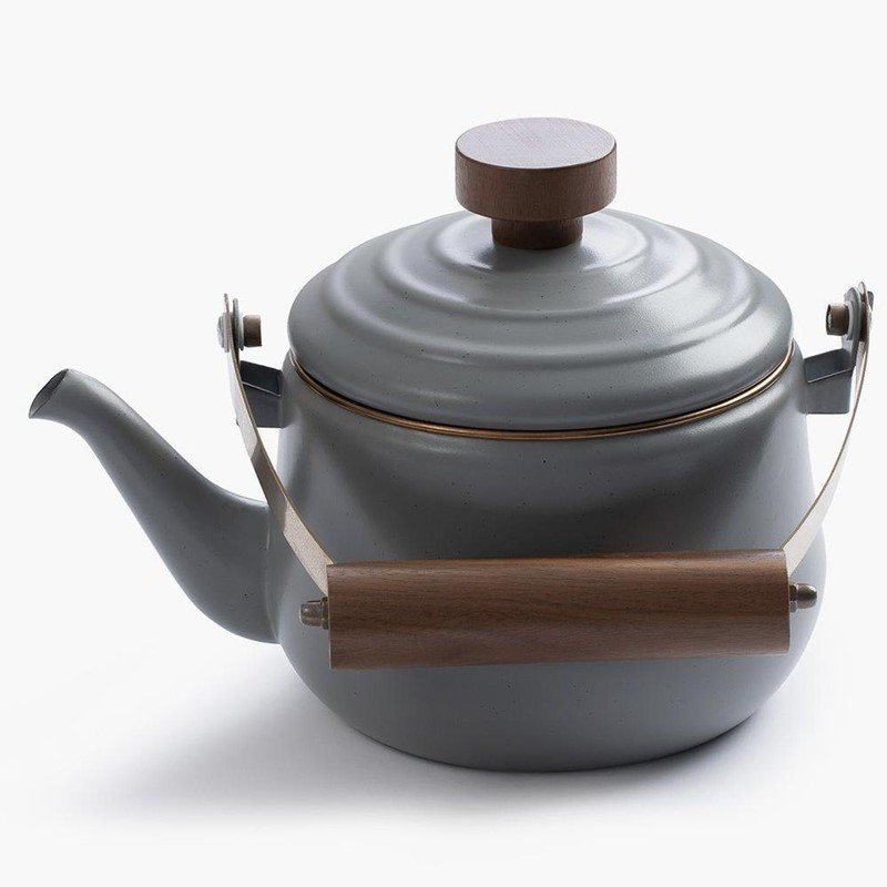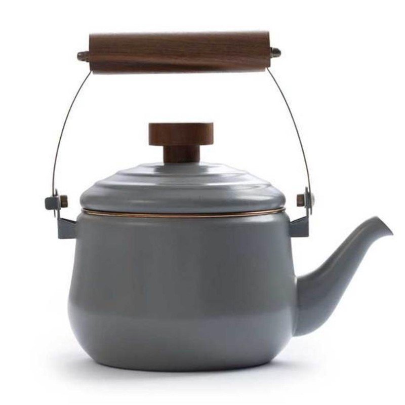To further enhance its aesthetic appeal, the Barebones Enamel Teapot – Slate Grey incorporates FSC-certified natural walnut accents. These beautiful and sustainable wooden elements add a touch of warmth and elegance to the design, elevating it to a true work of art.