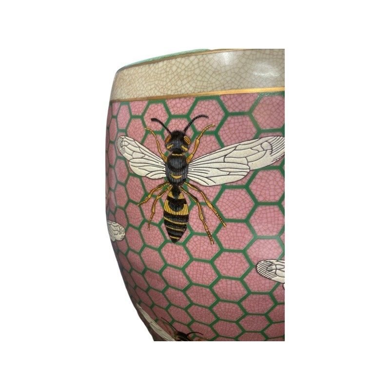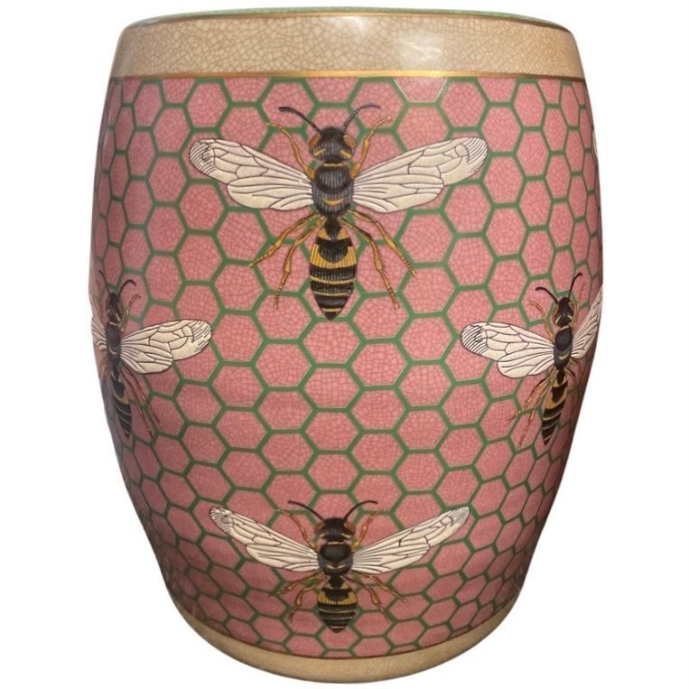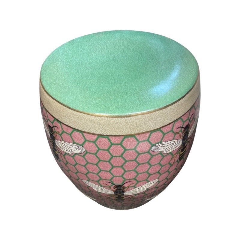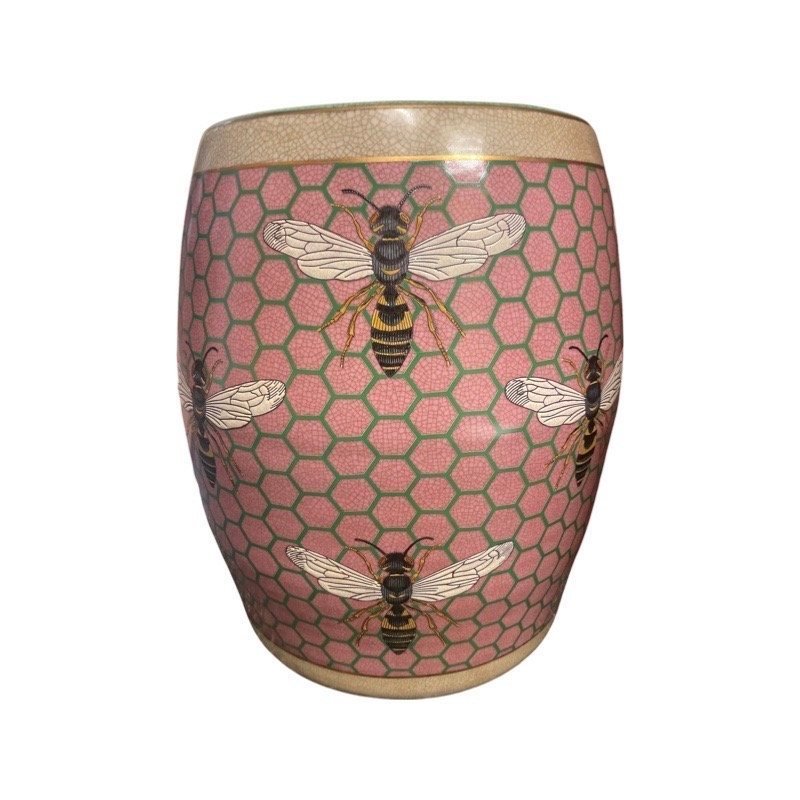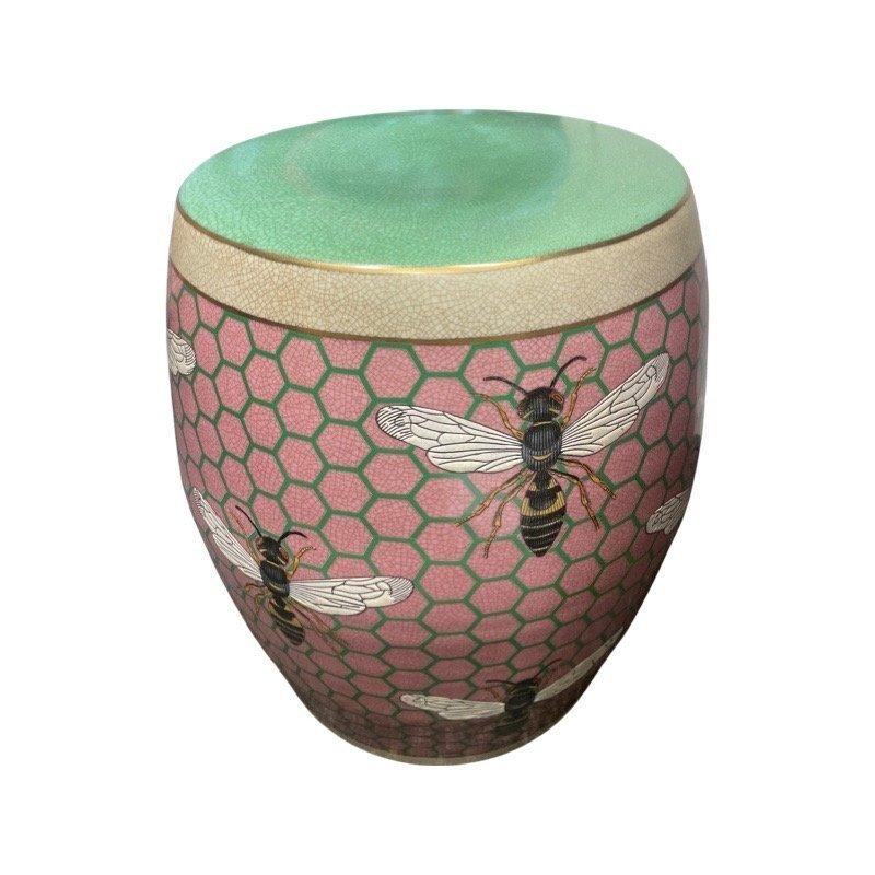 This beautiful porcelain stool features humble-bees placed on a pattern of hexagonal honeycomb background and is glazed to perfection