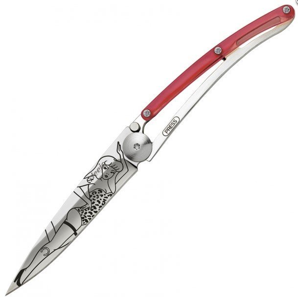 The Deejo Folder has everything essential in a pocket knife: a sharp blade, locking system and, pocket clip. It’s unique handle design incorporates a stainless steel frame with a liner lock tab and a tip down carry pocket clip. The Deejo is the epitome of minimalist knives and ready for both daily use and outdoor adventures.
