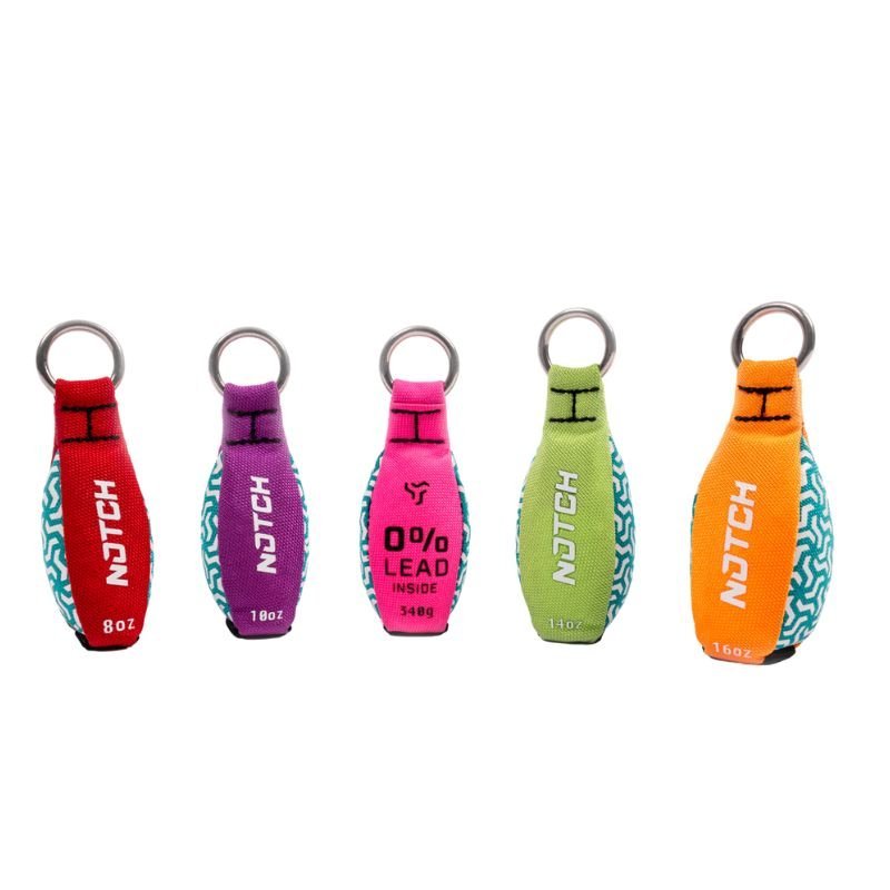 Introducing NOTCH Throw Weights, your solution to never losing a throw weight again! Featuring a proprietary design with high-contrast panels that stand out against any background. These weights are color-coded by size for easy identification. Available in sizes ranging from 8oz to 16oz. Crafted from durable cordura with a slot for inserting a connector in the lower part, each weight ensures resilience and ease of use in any environment.