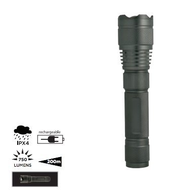Rechargeable torch lamp ‘Vision’. Anodised aluminium handle.