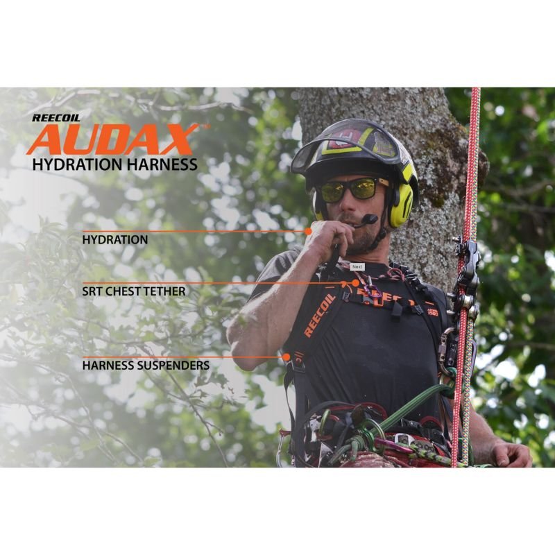 Introducing the Patent Pending Reecoil AUDAX 1500 Hydration Harness—the world’s first integrated Hydration Pack, Chest Harness, and Harness Suspender solution designed specifically for Arborists. Developed in Australia, this innovative harness allows you to stay hydrated while seamlessly integrating your climbing system and providing extra support for heavy gear.