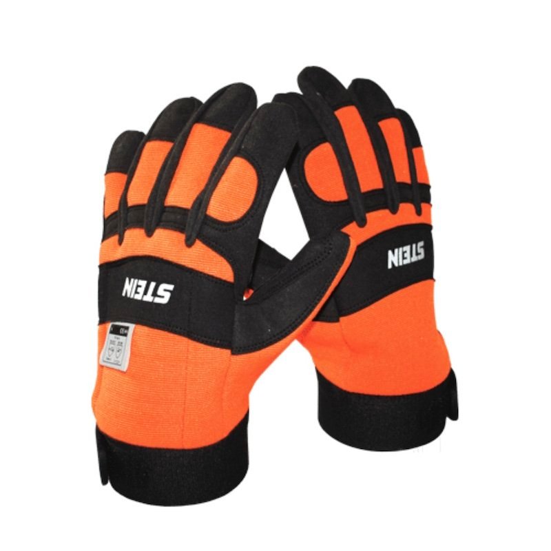 The STEIN Chainsaw Protective Gloves features a palm with shaped rubber reinforcement and Kevlar yarn stitching for added durability. This shaping offers the wearer a more dexterous feel during use. Both cuffs are elasticated along with a Velcro pull tab for ease of adjustment. This style of cuff reduces sawdust and dirt entering the glove and also helps to keep the glove tight on the hand. Saw protection left had only. For chainsaw use only, not intended for use as a general work glove.