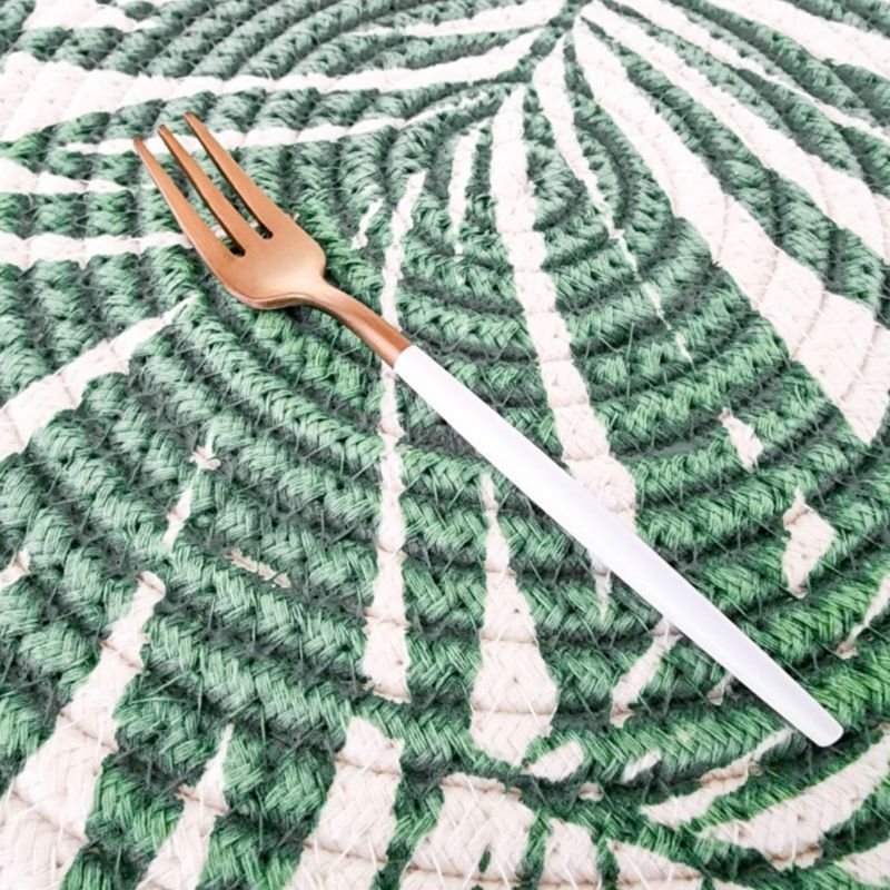 CLINQ White & Copper Dessert Fork Set – Refined Dining Made Effortless